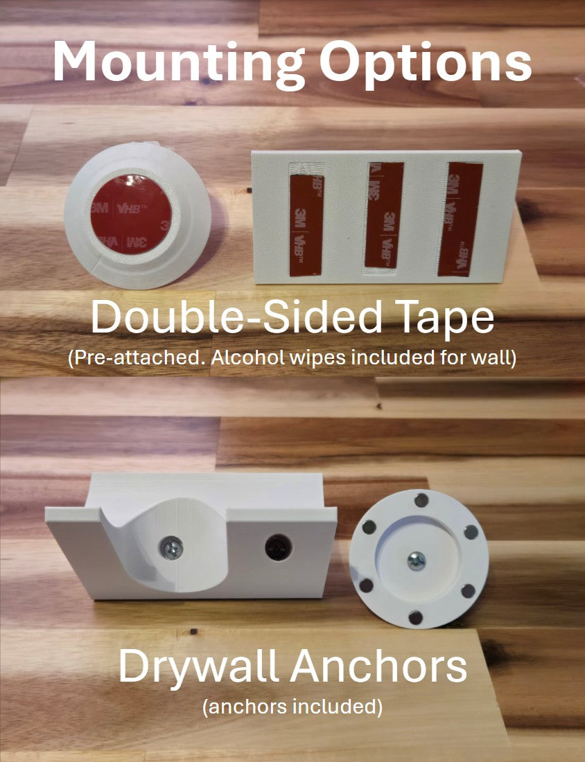 Mount it your way: Mount with included drywall anchors OR make mounting a breeze with pre-installed 3M tape and (alcohol wipes included to clean mounting surfaces). Choosing to mount with 3M tape also removes the screw holes from the surfaces for a cleaner finish!