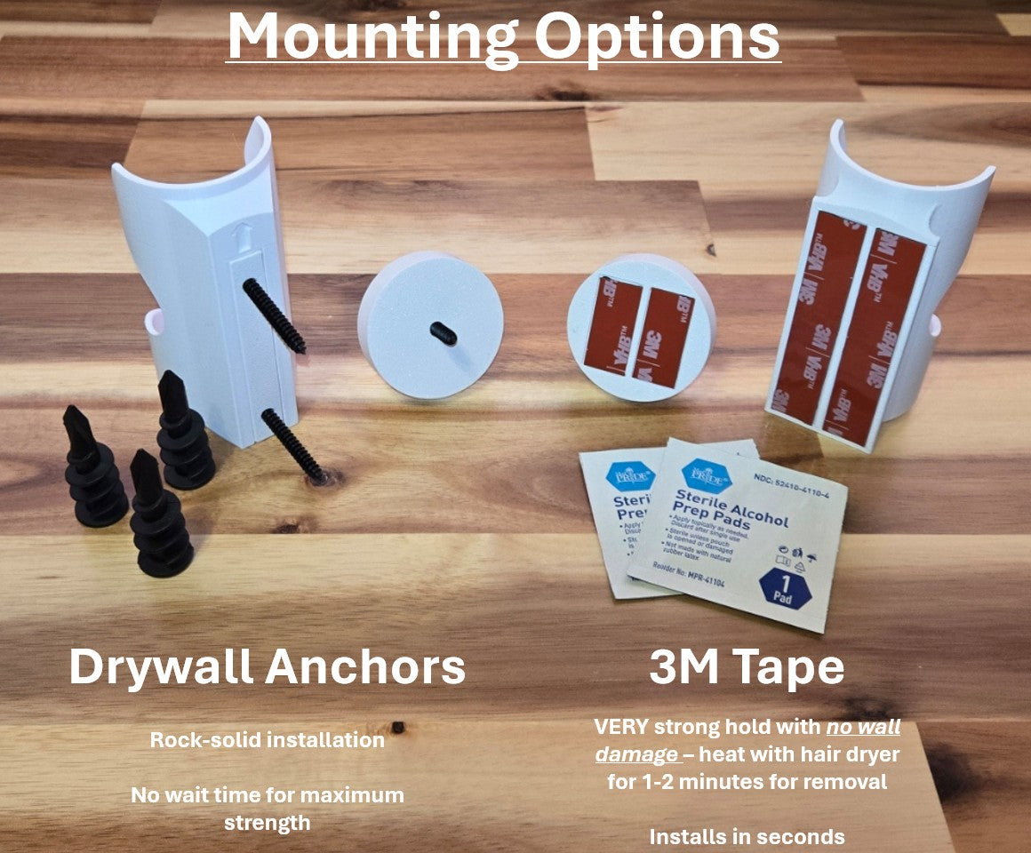 Mount it your way: Mount with included drywall anchors OR make mounting a breeze with pre-installed 3M tape and (alcohol wipes included to clean mounting surfaces).