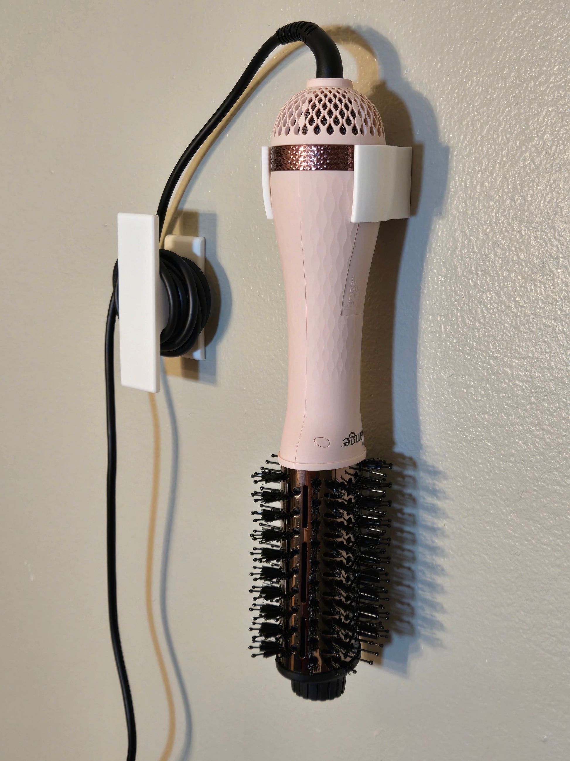 Give your blow dryer brush a dedicated space with cable management! No more wires across your counter, stuffed in a drawer, or in a box in the closet - stick it to the wall and display your straightener!